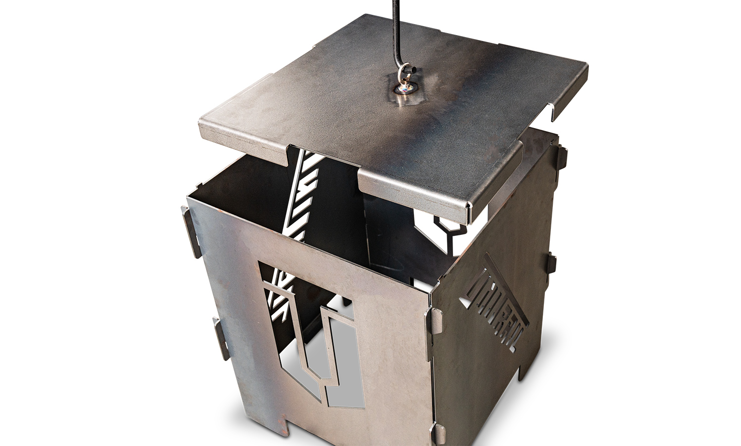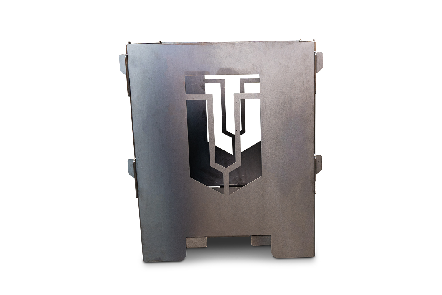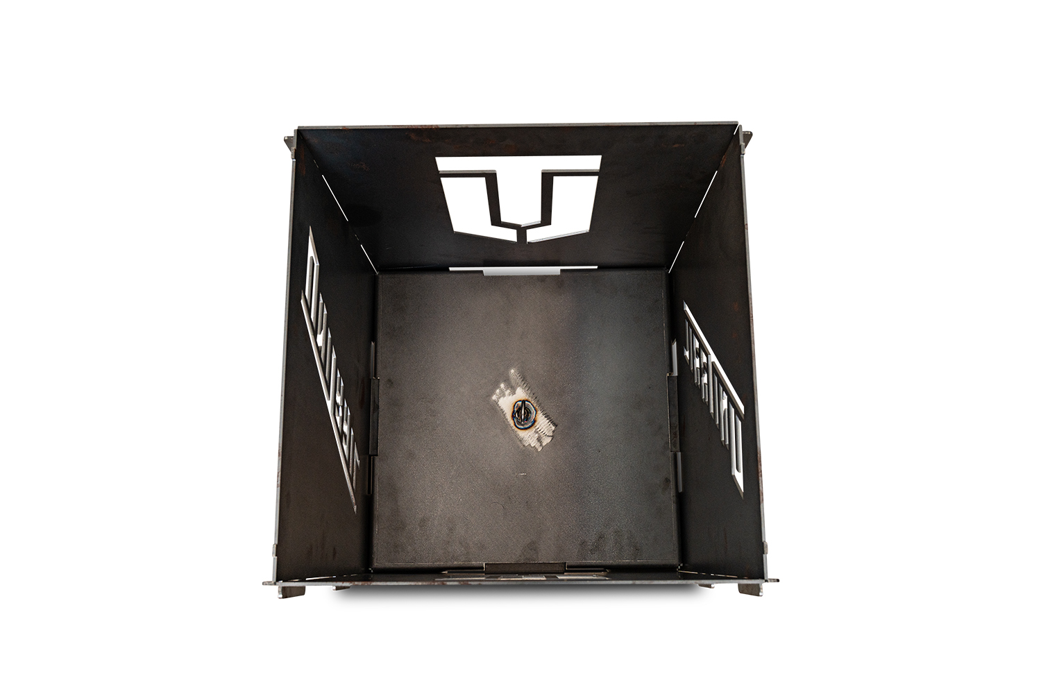 Mit seinen 30 mm Abkantungen, den speziell ausgeschnittenen Bereichen für die Innenlaschen der Tonne und der mittigen Schraubaufnahme für den Griff ist es nicht nur praktisch zum Entleeren der Asche, sondern auch essenziell als Auflagefläche für das Brennmaterial.